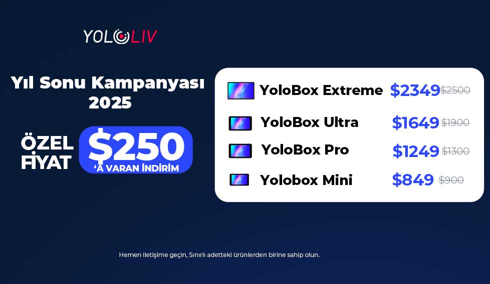 Yolobox Ultra ile düğünlerinizi sosyal mecralarda yayınlayabilir, kaydedebilir ve 4 kameraya kadar reji oluşturabilirsiniz.
