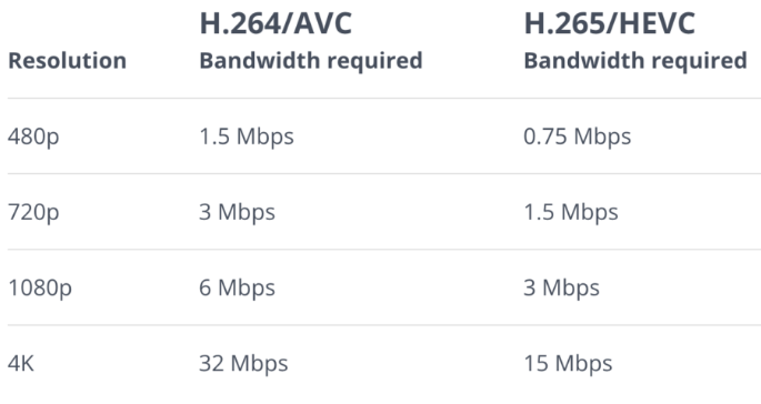 Daha düşük bant genişliği gereksinimleri: H.265, aynı kalitede video iletmek için H.264'ten daha az bant genişliği gerektirir. Bu, onu internet üzerinden video akışı için ideal kılar.