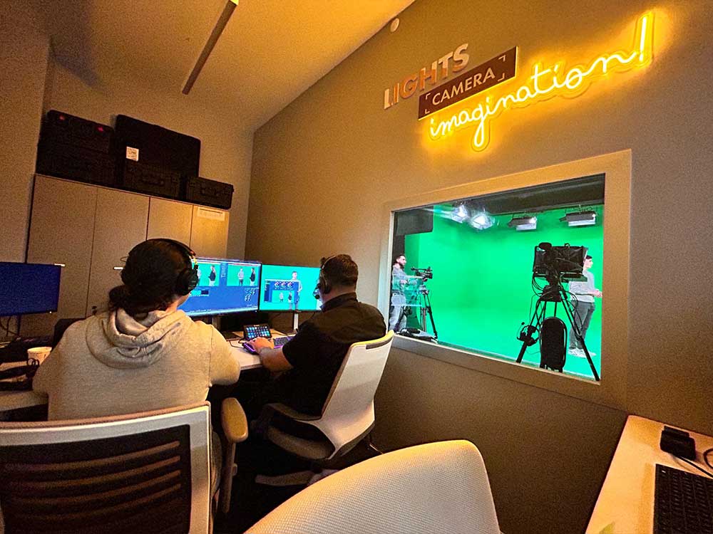 Stüdyoyu, gençlerin hem canlı yayın yapabileceği hem de prodüksiyon projelerini hayata geçirebileceği şekilde donattık. Üç kameralı reji sistemi, Canon XF605 kamerayla desteklenerek yüksek çözünürlüklü görüntüler sunuyor. Sunucular için Fortinge PROX15 15'' Stüdyo Prompter, ses için Sennheiser EW-DP ME mikrofonlar ve prodüksiyon için vMix Prodüksiyon Bilgisayarı kullandık. Işıklandırma tarafında Swit CL-100D (100Wh) ve Swit CL-120D (120Wh) LED Panel Light panelleriyle homojen bir aydınlatma sağladık. Ayrıca, Sony FX3 Body ve Sony FE 24-70mm F/2.8 GM Lens ile gençler yaratıcı çekimlerini özgürce gerçekleştirebiliyor.